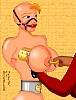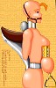 Next, heavy brass collars were squeezed over her breasts until they hung like little blobs of dough on her stomach. They felt very odd hanging there, brushing against the cold steel of her belt. Then, because everything has to be extreme with Safia, titanium shafts were pierced through her breasts to permanently secure the brass collars in place.