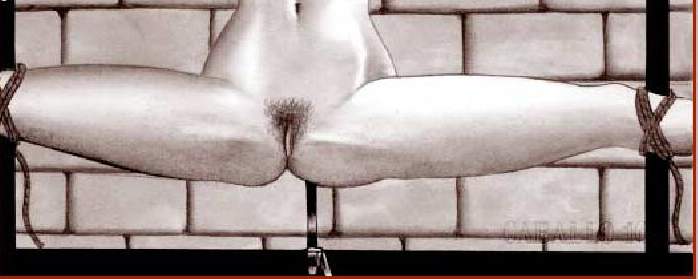 Esther bringing the crop up from under, hit Sabrina at the crotch. The girl in the frame screamed at the pain.