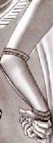 the loose end tied to a ring at the base of the frame. Her elbows were released