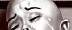 of sweat were pearling on her shaved head and face. On the branch of the V that
