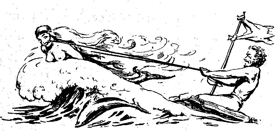 Before I quite realized what had happened, I found myself bathed, and fed, resting on a couch in the shelter of a cool room - a delightful contrast to the harsh voice of the sea which I had heard at such close quarters for the last few days - and which now, as I relaxed completely, returned drumming in my ears. And I fell asleep to dream of mermaids harnessed to my raft drawing me across warm sunny seas in a glorious surf-riding game of follow-my-leader.