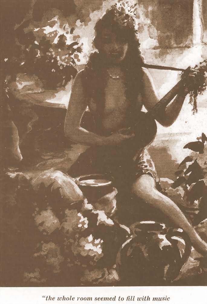 Never before have I heard anything like it. The strings sang an accompaniment to that wonderful voice, and though the words were in the soft native dialect, there was no mistaking their meaning. I felt that I was held fast by an irresistible force, as if everything were being drawn out of me and that I was being carried away and away on a magic carpet through a starry sky, floating on and on - until at least as gently as it had begun the melody faded, and with it the stars and the magic carpet, and I realized that I was still sitting in my chair, the room once more full of the quiet of the evening. Or was it quiet? There still seemed to be music everywhere.